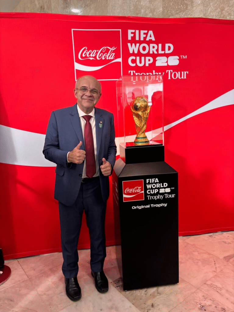 Aconteceu na data de hoje, no Palácio do Planalto, a apresentação da taça da Copa do Mundo FIFA de Futebol de 2026 e da Copa do Mundo Feminina de 2027.