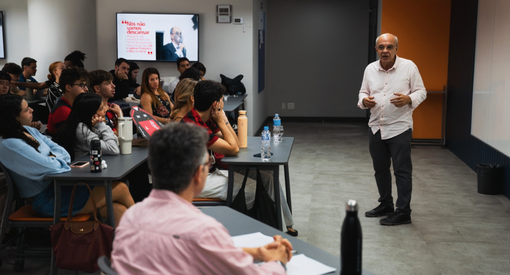 “Uma honra conversar com os estudantes de comunicação da FGV sobre a transformação e a recuperação financeira do Clube de Regatas do Flamengo, um trabalho construído com responsabilidade, transparência e muito planejamento.